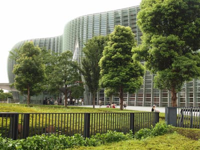 全面ガラス張り+鉄骨だと思うけど、このうねうね〜っとした感じ。