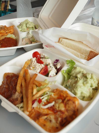 ミッドタウンの中のデリで、好きなおかず4種とパンのセットを買って、ビルの中にある休憩コーナーを陣取ってランチ☆