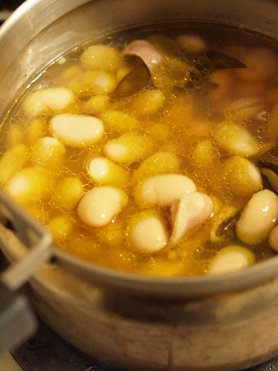 のぞきに行った(笑)お鍋の中には、大きなお豆がふっくらと煮てあっておいしそう♪