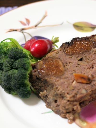 ひき肉のつなぎにケーキクラムが入ってたり、いちじくのワイン煮や、栗の渋皮煮、ナッツなどが入ってる、香ばしくって、なんとも超ゴージャスなミートローフなのでした!