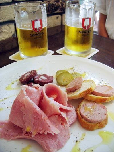 でもせっかくだから、本場のビールと、ソーセージとハムを食べてみましょ♪