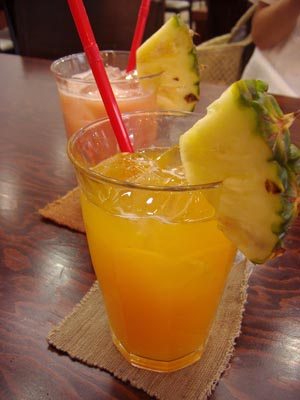 「東京愛らんど」というべたべたなネーミングの特産品売り場に隣接して「島カフェ」というセルフのカフェがあったので、島特産だというグアバジュースとパッションフルーツジュースを飲んでひとやすみ☆