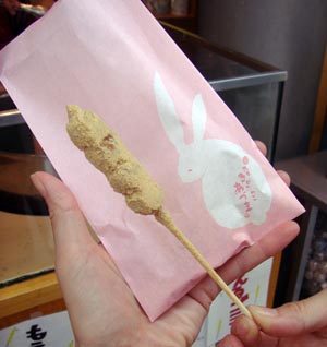 いきなりがっつり食べたから、さすがに食べ歩きはしないかと思ったら、purinnちゃん、きびだんごが食べたいという!