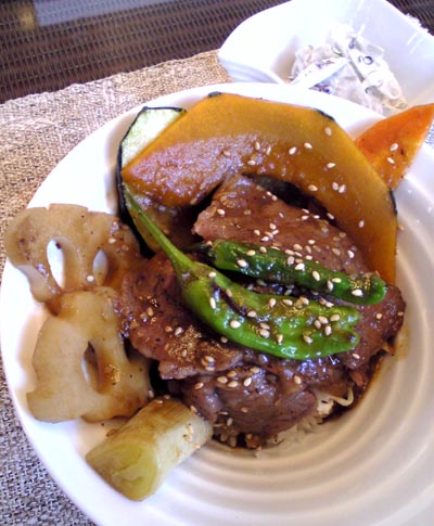 お腹が空いていたので、いろいろあったランチメニューの中から「野菜たっぷりのビーフ丼」をチョイス☆