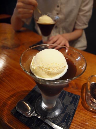 しかもこのゼリー、「香り」とか「苦み」とか、三種類くらいあって、自分の好きなタイプを選んで、上にバニラアイスクリームが乗せてくれるの☆