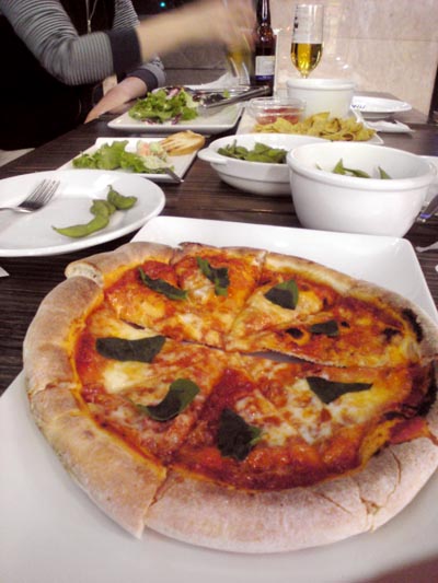 おつまみは、枝豆にシーザーサラダ、ナッツ&トルティーヤチップ、アボガドシュリンプとガーリックトースト、ピザなどだけど、いやいや、充分デス〜♪(#^^#)