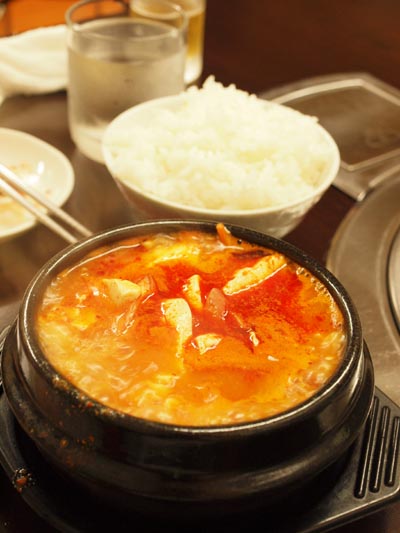 店内に入ったら、気さくなオモニが迎えてくれて、角にテレビ、壁にメニューベタベタ、お客さんは韓国人の方々と、なんだかソウル戻ったような(笑)