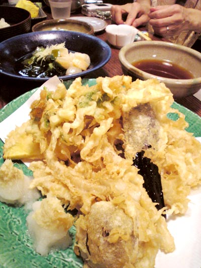 野菜の天ぷらは、人参、エリンギ、しめじ、タマネギ、シソ、茄子、ごぼう、しいたけと盛りだくさんで、話に夢中になってちょっと冷めかかってもカリッとして美味しかった。←早く喰えよ(笑)
