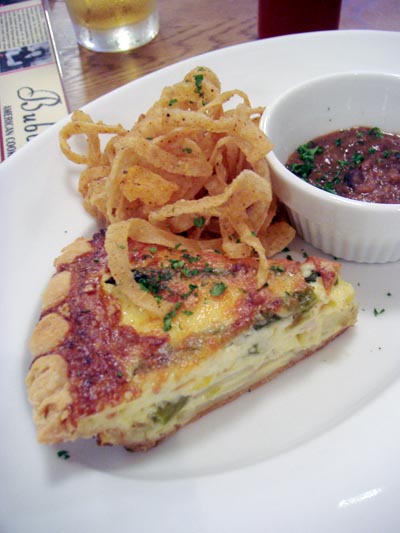 付け合わせに二品選んでいいというので、オニオンストローフライと、ブラックビーンズ煮を。