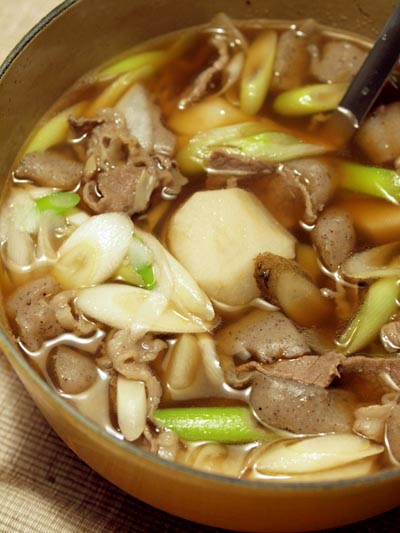 里芋が煮えて柔らかくなったら牛肉を入れてアクを取り、砂糖と酒、味を見て足りなかったら醤油を足して味を整え、最後に斜めにカットしたネギを入れて出来上がり〜!