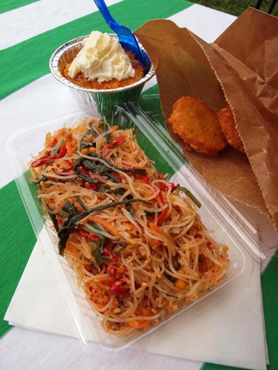 エスニックビーフンと、ファラフェル、それにコーンミールブレッド。