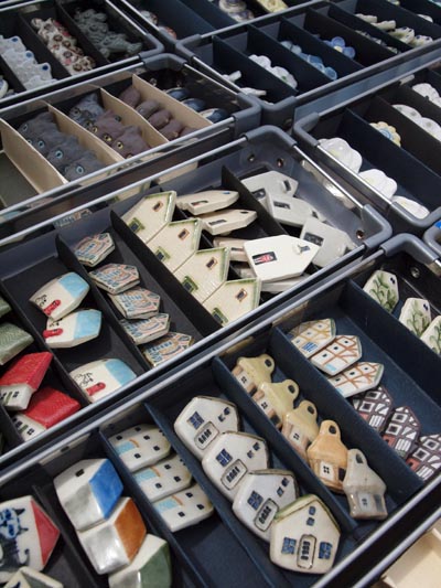 この画像は、陶器で作ったボタンが、ズラ−ーーッと並んで壮観だったから思わず見入ってしまった。