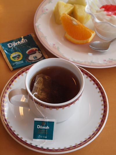 食後にカヲさんはコーヒー。私は紅茶とフルーツ。