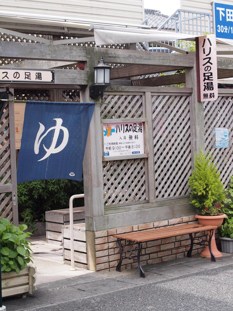 ペリーロード近くの町なかには、手湯足湯通りというのがあって、無料で温泉に手を浸したり、足を浸したりする場所が何箇所かあるのね。