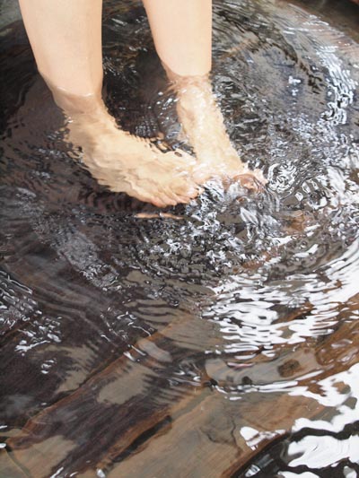 意外にも温度高めなお湯で、歩き疲れた足がじんわり温まって気持ちよかった!