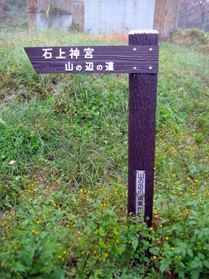 そしてさらに歩いて行くと、ようやく石上(いそのかみ)神宮の標識が。