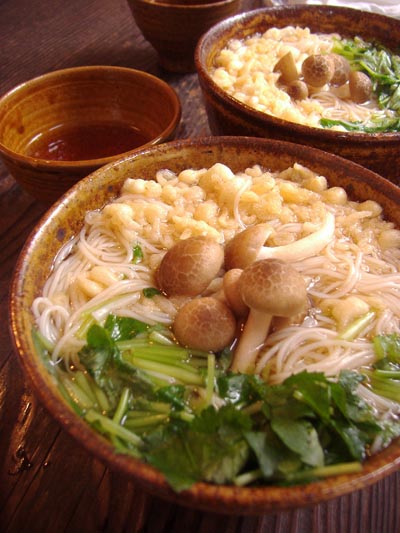 明日香村の民宿の夕飯は、今の時期なら鶏肉を牛乳で煮る「飛鳥鍋」らしいんだけど、予約のときにうっかり言い忘れてたので、普通のご飯(笑)
