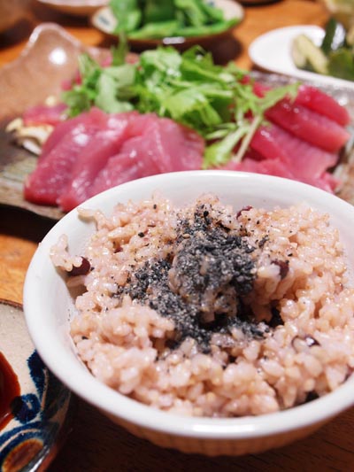 夕飯は、枝豆に玄米ご飯に手作りゴマ豆腐にヌカ漬けに・・・・マグロー!!