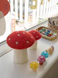 おお、かわいい手作りの帽子がたくさん並んでる〜♪