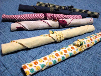 布の端に付けた布の輪にお箸を通し、後はくるくるっと巻くだけ☆