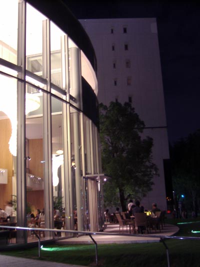ガラス張りのところは、こんなふうにテラスのあるカフェになっていて、夜になるとなかなかいい雰囲気♪
