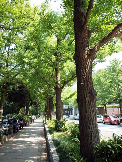 山下公園の通りに戻って、日陰を求めてイチョウ並木の下へ。