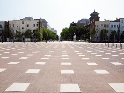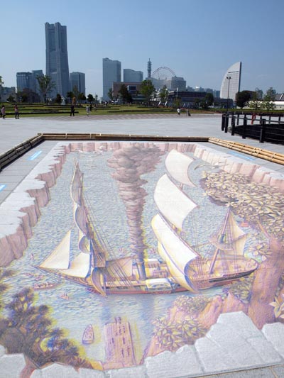 Y150のイベントなのか、公園の地面に、船のトリックアートが。