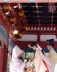 まず仲間うちでカップルになった、別の友人ふたりが、舞殿で式を挙げたのは、5年前。