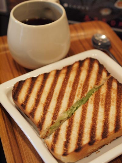 夕方いつもお腹が空くので、ハムチーズホットサンドとコーヒーのセット♪