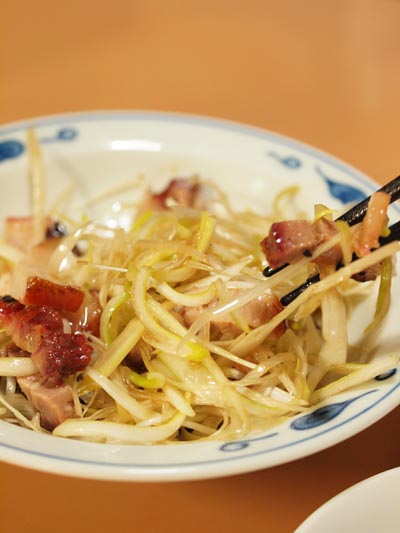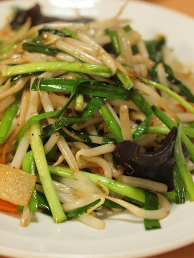 野菜も食べようと「もやし炒め」と「ニラ炒め」どちらにしようか迷って「ニラ炒め」にしたら、もやしもキッチリ入っていた。きっともやし多めなのが「もやし炒め」なのよ、などとみなで勝手に想像して笑う。