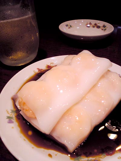 画像の真っ白い物体は、広東語で「腸粉(チョンフェン)」と呼ばれる、粉もの料理。