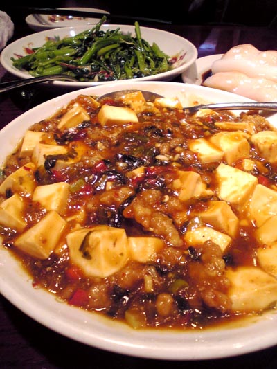 空芯菜の腐乳炒め、豆腐と豚肉と高菜の煮込み、叉焼乗せご飯。