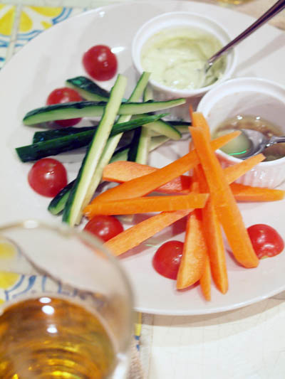 おつまみに頼んだバーニャカウダは、キュウリと人参がキャンプファイヤー状態!