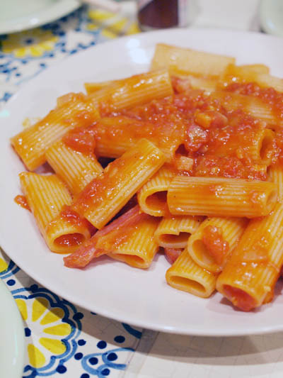 トマトソースのリガトーニ。アラビアータだったらしい。