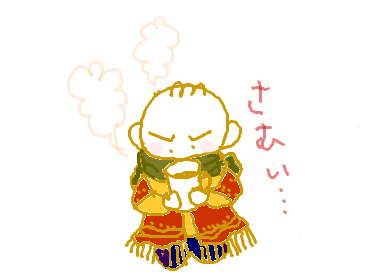 うちの中なのに、マフラーにショール、足下は防寒部屋履きは欠かせない。
