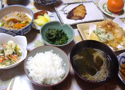 明日香村の民宿の夕飯は、今の時期なら鶏肉を牛乳で煮る「飛鳥鍋」らしいんだけど、予約のときにうっかり言い忘れてたので、普通のご飯(笑)
