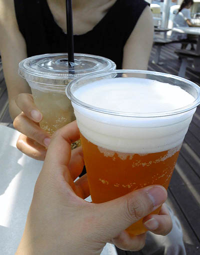 滑走路を横に見ながら、展望フロアで飲むビールがウマイ〜♪