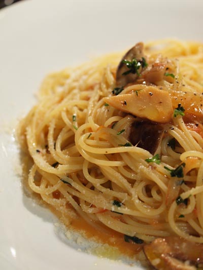 ジビエに合うよう、それまで赤ワインを飲んでたのだけれど、シメにポルチーニ茸のスパゲッティを注文したら、ダンナが「こっちもシメにギネス頼んでいい?」と、遠慮がちに言う。