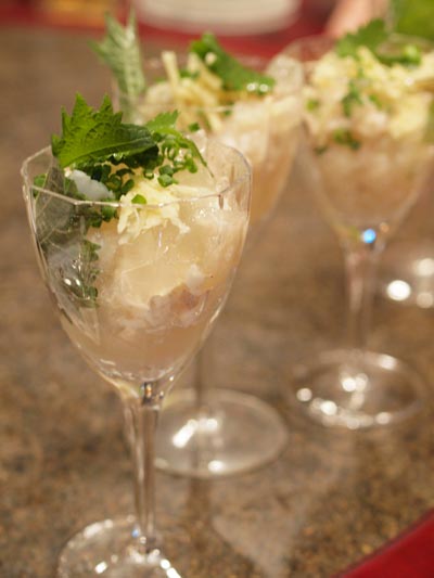 それから牛タンの煮込みのスライス、カクテルグラスのは白身魚の煮こごり。