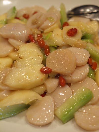 炒めものは、たっぷりの帆立に、なんとリンゴのスライス!