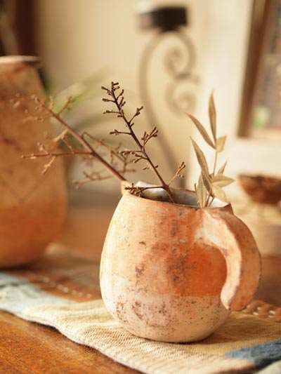 そしてさりげなく飾られているカラスウリにゴーヤの種、大家さんからのいただきものだという、コスモスやみかん(枝ごと!)などなど、季節感いっぱい!