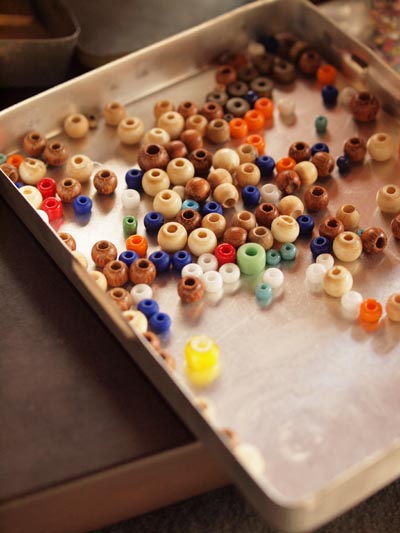 部屋の中には、糸やハサミ、ビーズなどなど。