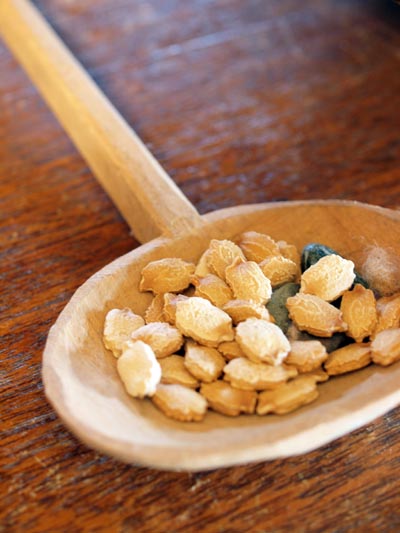 今回のワークショップは「布ナプキンを作る&ビワ染め」と「彫金のスプーンネックレスを作る」という、なんとも楽しみな2本立て〜♪