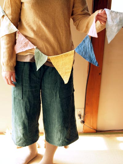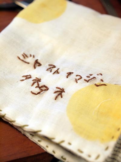 縫ったものを、染めてくれるというので、それぞれ名前を小さく刺繍する。