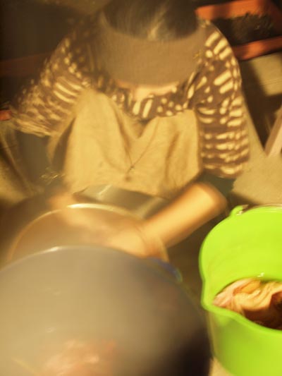 光量不足でボッケボケな画像だけど、メニューは、相変わらずバカのひとつ覚え的「芋煮」と、茄子の炒め煮、水菜とアボカドの白和え。