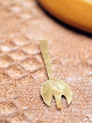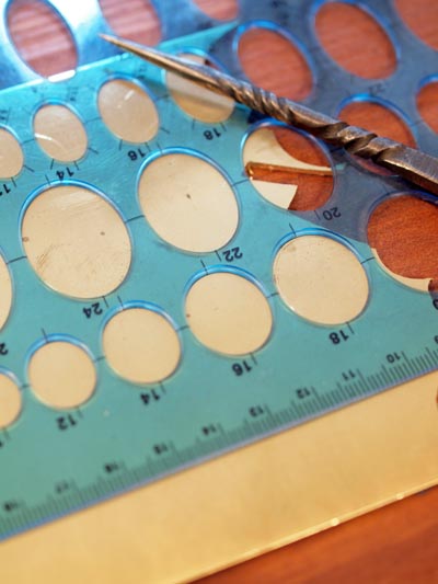 そうして、やっとこさっとこ切り抜いたものを、今度はバーナーで熱した後、水に入れて急速に冷まし、柔らかくしたところを、小さなトンカチで叩いて丸みを付けていく。