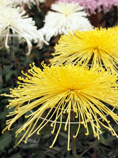 園内では、ちょうど菊花展も開催されていて、あちこちにいろいろな菊の鉢が展示されていたよ。