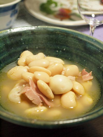 戻したお豆に、にんにくとベーコン、固形スープを入れて煮ただけなんだって。
