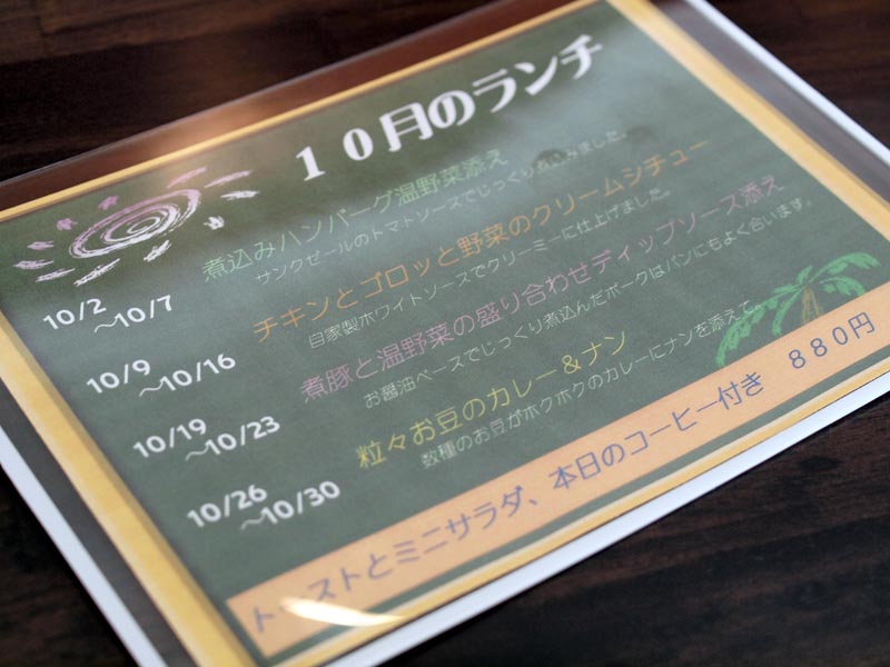 お店に着いたとたん、ランチお願いしまーす!と注文したけれど、今月から始まったランチ。週替わりでこんなふうに↑なったそうです(クリックで拡大)