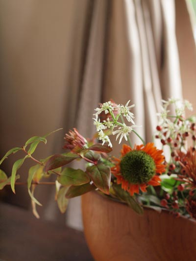 画像の秋らしいお花は、ご友人のひとりが、いらしてからすぐにササッと生けられたもの☆
